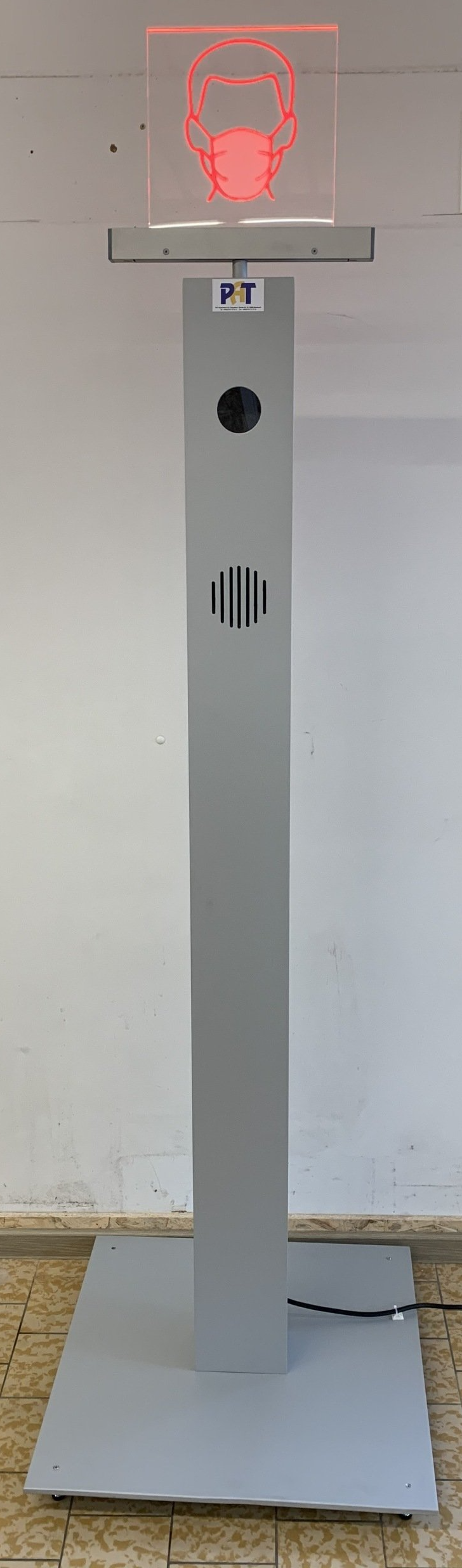 Das PAT Deutschland Maskenerkennungssystem mit modernster Kameratechnik unterstützt durch automatisches Erkennen des korrekten Tragens einer Mundnasenbedeckung. Durch akustische und visuelle Signalgebung wird auf Verhalten hingewiesen.